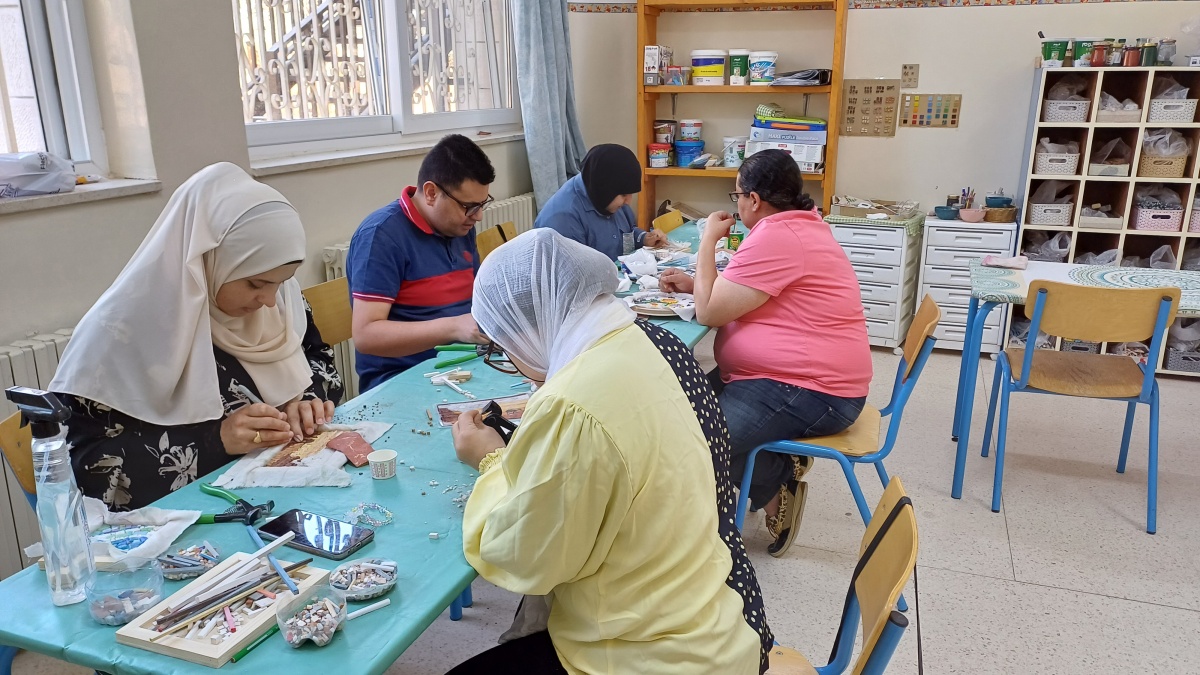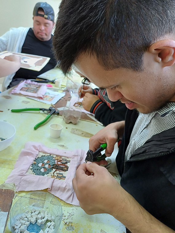 Through the mosaic workshop, we produce artworks that contribute to support the center’s activities. We also create pieces that enrich and beautify our surroundings — works that can be enjoyed by all our children, visitors, and friends.