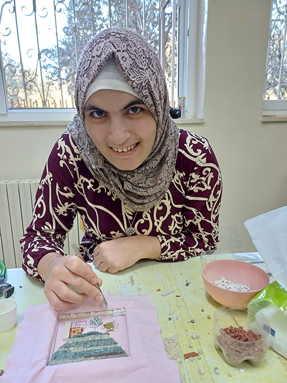 Our mosaic workshop is one of the most beloved spaces for both our students and visitors. We are passionate about creating mosaics because Madaba — our city — is world-renowned for its ancient mosaic art and rich heritage, which we strive to preserve and renew today.